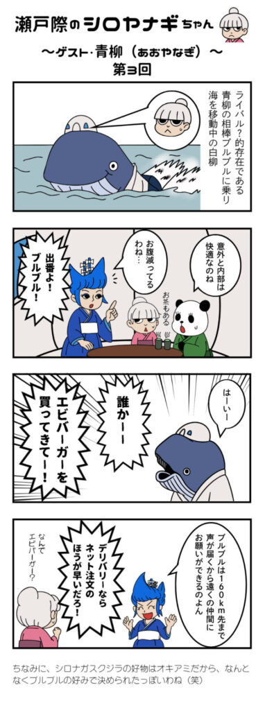 少し変わった髪型の霊媒師見習いの白柳(シロヤナギ)ちゃん。彼女には霊媒師として、致命的な特殊能力が…。今回は青柳の相棒・ブルブルに乗って海へ出た白柳。その脅威の特殊能力は凄まじいのだが…!?