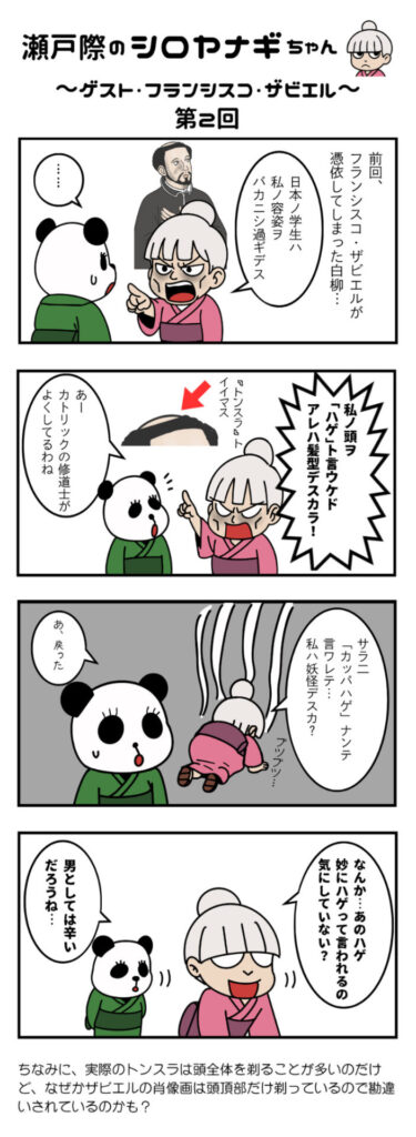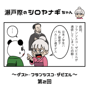 4コママンガ「瀬戸際のシロヤナギちゃん」ゲスト・フランシスコ・ザビエル 第2回