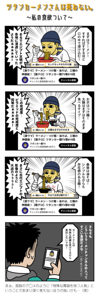 4コママンガ「ツタンカーメンさんは死ねない。」私の食欲について