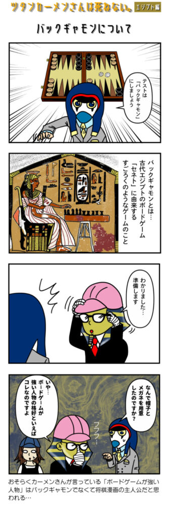 3000年以上も生き続けるツタンカーメンさんはミイラであっても肉体を維持するために死ぬわけにはいかない。今回はバックギャモンで対決をすることになるがその準備がやばい?