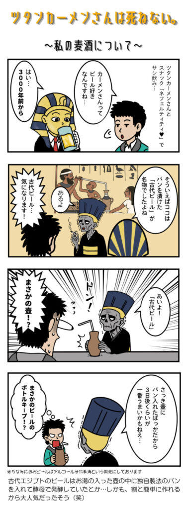 3000年以上も生き続けるツタンカーメンさんはミイラであっても肉体を維持するために死ぬわけにはいかない。今回はカーメンさんの好物であるビールがさらに深掘りされていく…!?