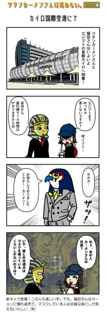 3000年以上も生き続けるツタンカーメンさんはミイラであっても肉体を維持するために死ぬわけにはいかない。今回はカイロ空港に到着!まさかの男が迎えに…?