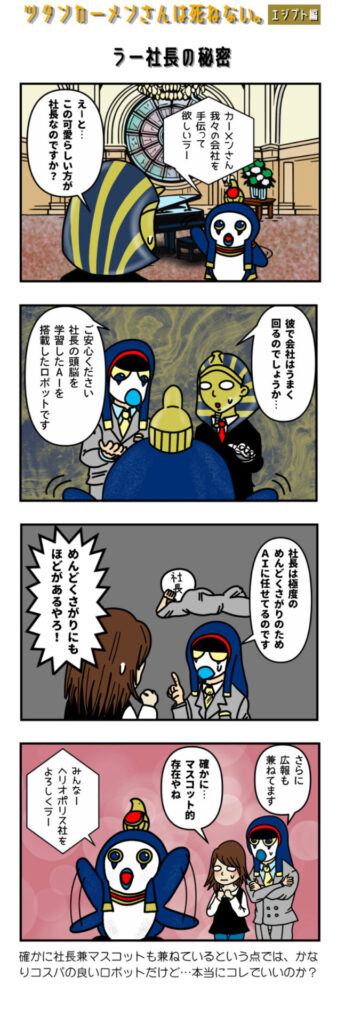 3000年以上も生き続けるツタンカーメンさんはミイラであっても肉体を維持するために死ぬわけにはいかない。今回はラー社長の正体が明らかになる。果たして彼は何者?