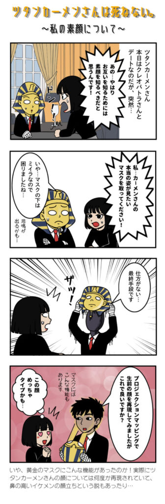 4コママンガ「ツタンカーメンさんは死ねない。」私の素顔について