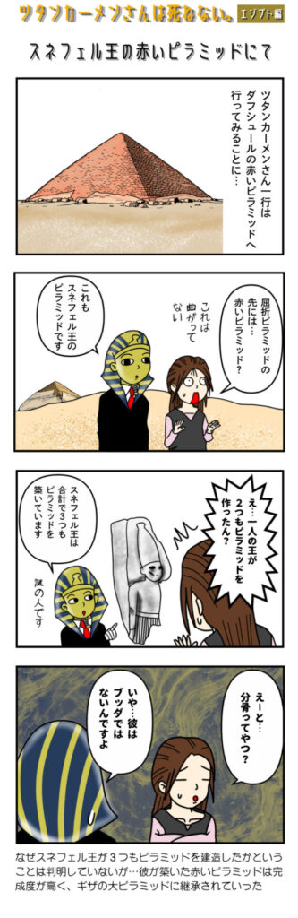 3000年以上も生き続けるツタンカーメンさんはミイラであっても肉体を維持するために死ぬわけにはいかない。今回は屈折ピラミッドの向こうの赤いピラミッドへ行くが…建てた人物は誰?