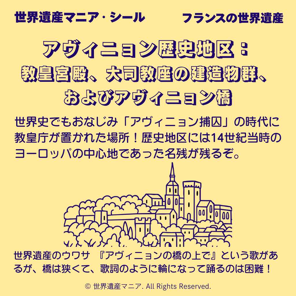世界史でもおなじみ「アヴィニョン捕囚」の時代に教皇庁が置かれた場所!歴史地区には14世紀当時のヨーロッパの中心地であった名残が残るぞ。