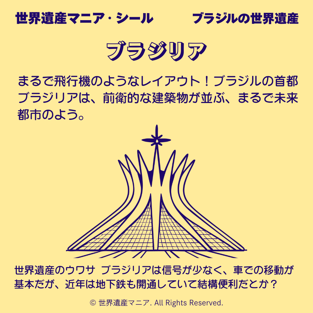 世界遺産のウワサ ブラジリアは信号が少なく、車での移動が基本だが、近年は地下鉄も開通していて結構便利だとか?
