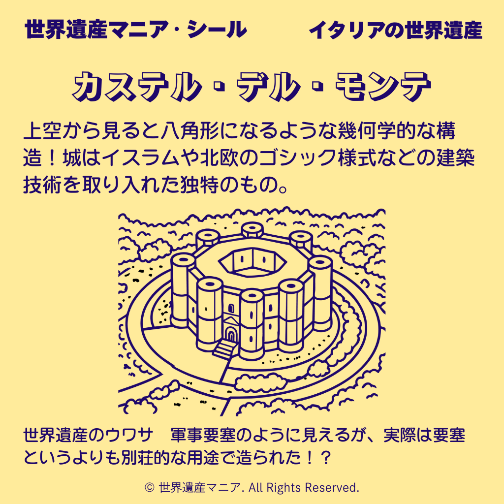 世界遺産を"某”おまけシール風にデフォルメして再現。小さなシールの中に、奥深い遺産の世界が広がっているぞ!裏面にはそれぞれの世界遺産の秘密が!?
