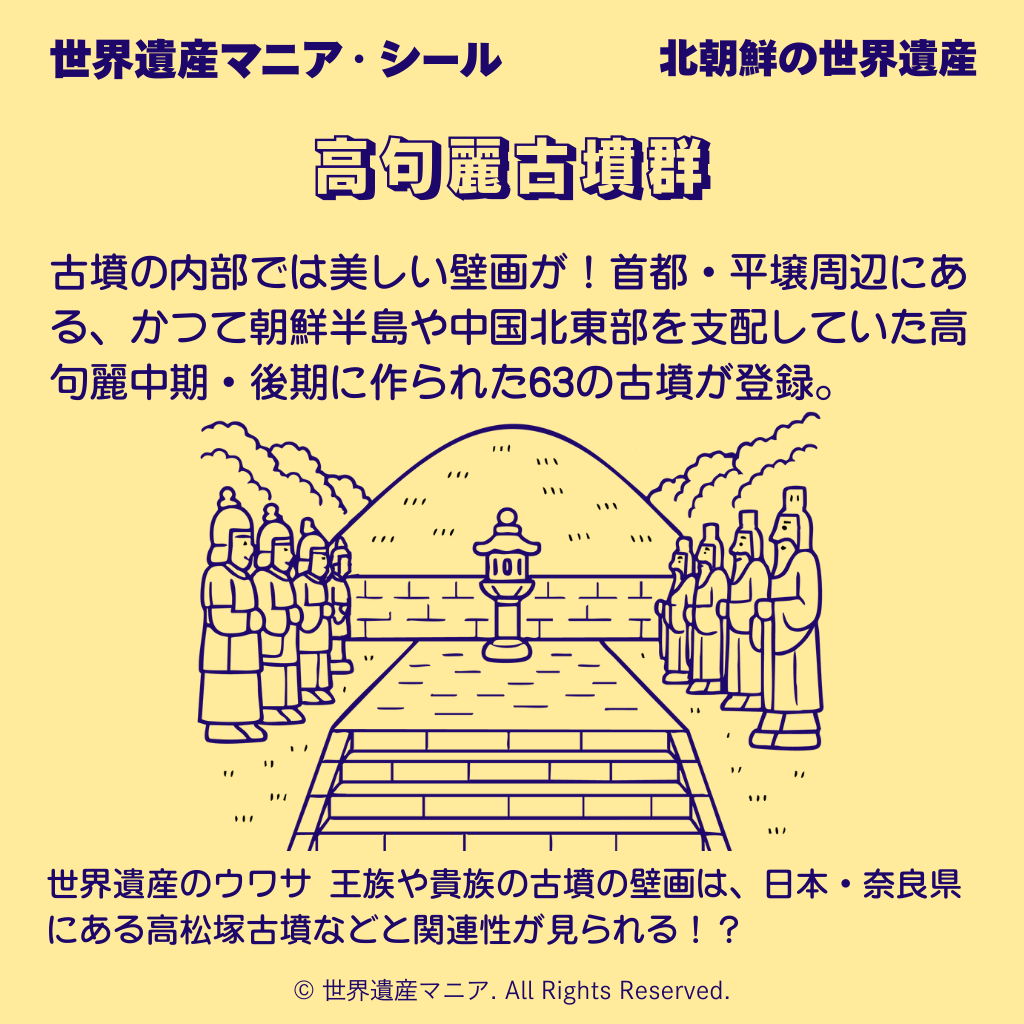 古墳の内部では美しい壁画が!首都・平壌周辺にある、かつて朝鮮半島や中国北東部を支配していた高句麗中期・後期に作られた63の古墳が登録。