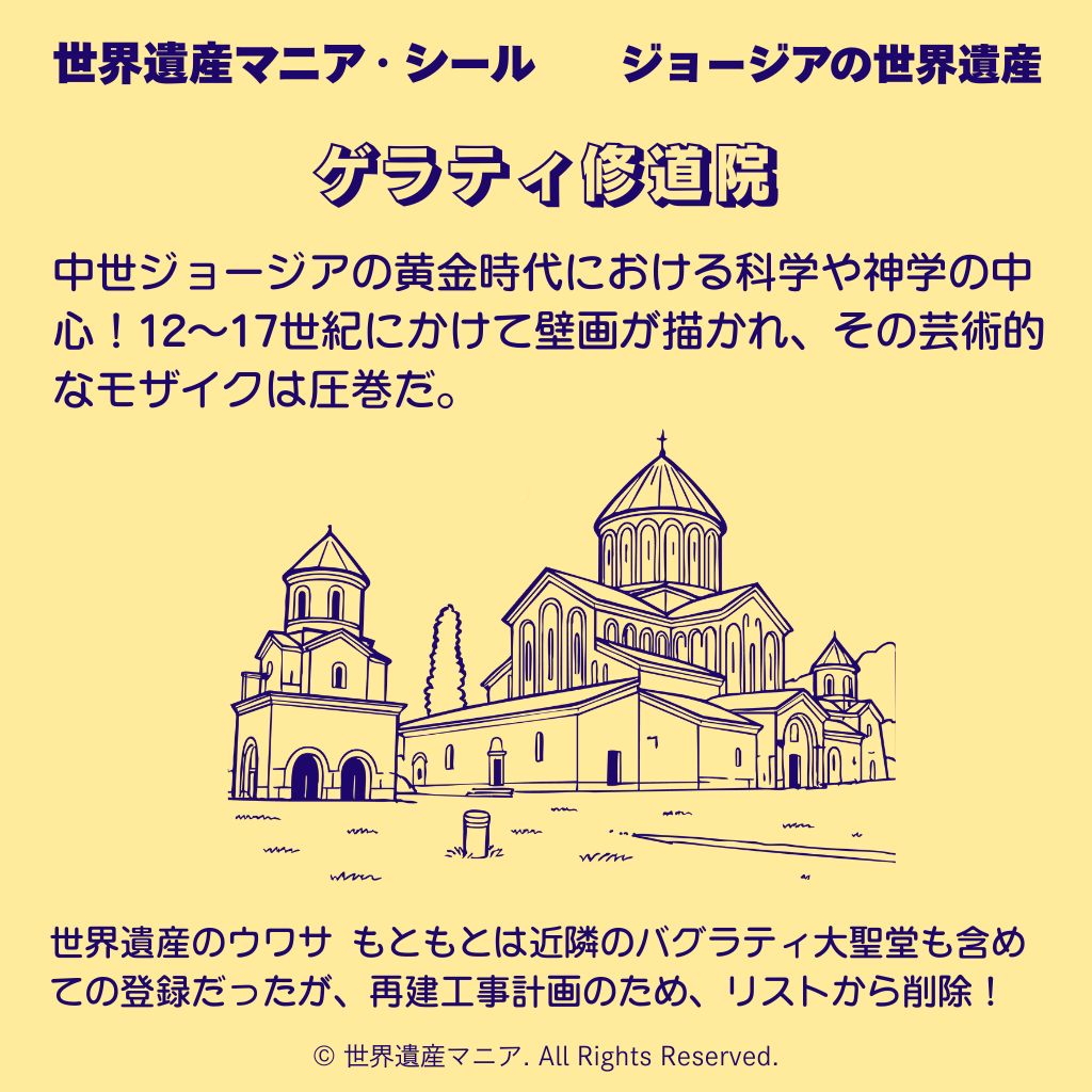 世界遺産のウワサ もともとは近隣の「バグラティ大聖堂」も含めての登録だったが、再建工事計画が真正性を損なうことからリストから削除!