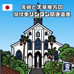 「潜伏」しながら信仰を続けるという「潜伏キリシタン」にまつわる12の遺産で構成!城跡や集落など、彼らの苦難の歴史が見られるのが特徴だ。