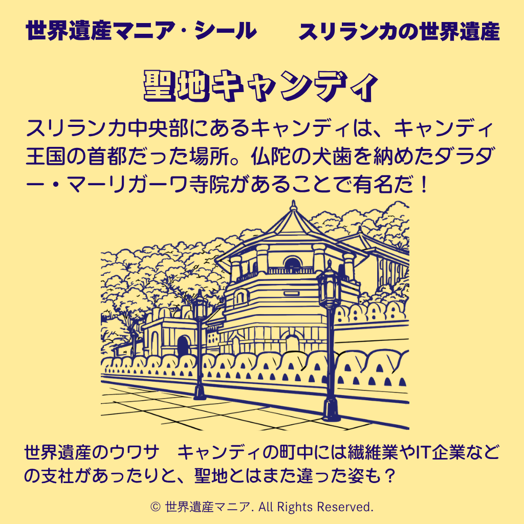 スリランカ中央部にあるキャンディは、キャンディ王国の首都だった場所。仏陀の犬歯を納めたダラダー・マーリガーワ寺院があることで有名だ!