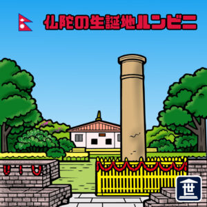 ルンビニはネパール南部にある小さな村。ここは仏教の開祖である釈迦(仏陀)が生まれたとされる場所で、仏教の四大聖地となっているぞ!