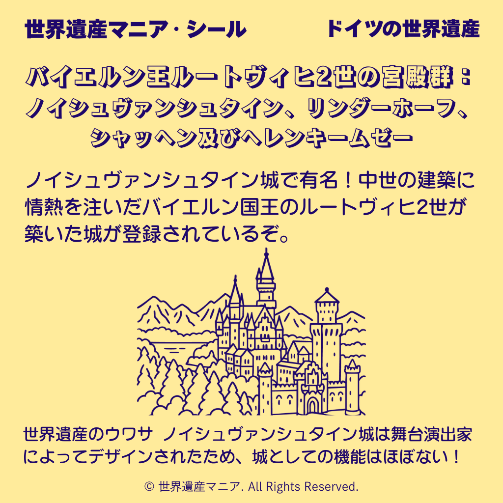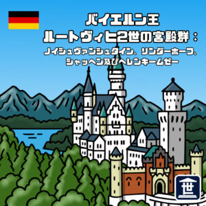ノイシュヴァンシュタイン城で有名!中世の建築に情熱を注いだバイエルン国王のルートヴィヒ2世が築いた城が登録されているぞ。