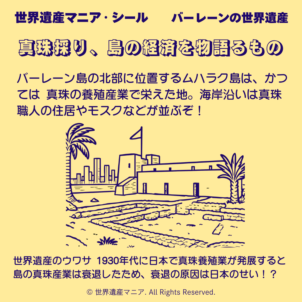 世界遺産シール「真珠採り、島の経済を物語るもの」