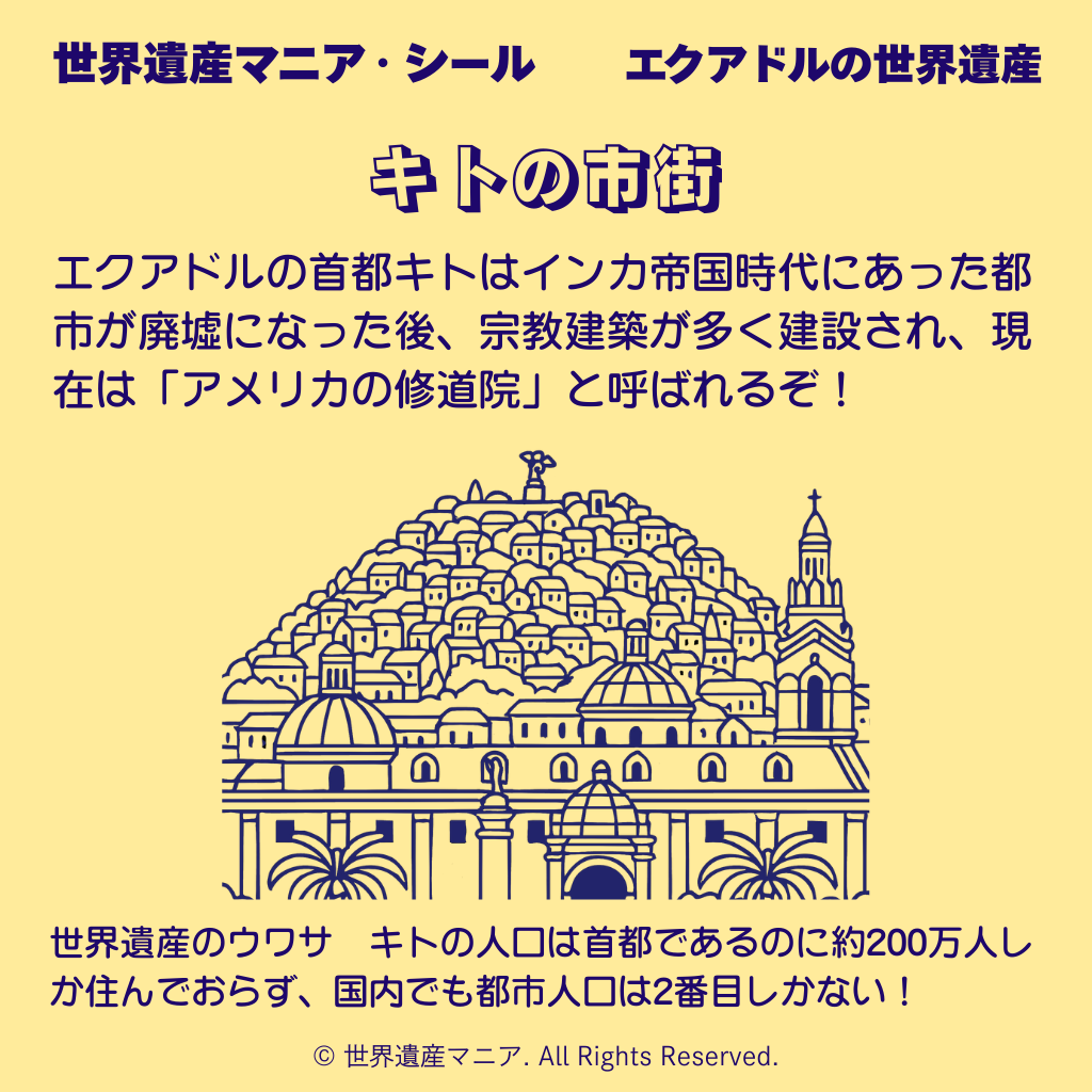 エクアドルの首都キトはインカ帝国時代にあった都市が廃墟になった後、宗教建築が多く建設され、現在は「アメリカの修道院」と呼ばれるぞ!