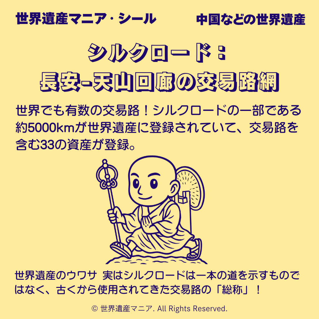 世界でも有数の交易路!シルクロードの一部である約5000kmが世界遺産に登録されていて、交易路を含む33の資産が登録。