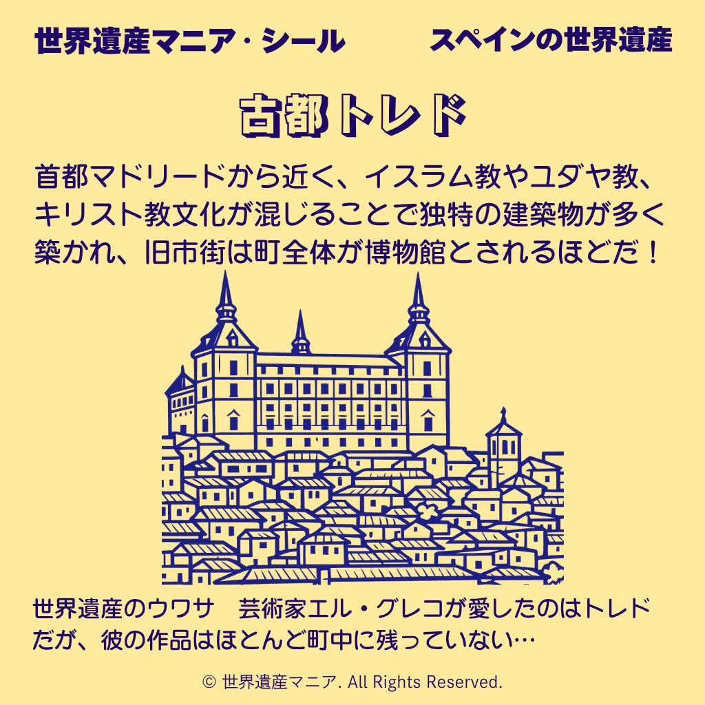 首都マドリードから南にある古都トレドは、イスラム教やユダヤ教、キリスト教の文化が混じることで独特の建築物が多く作られ、旧市街は「町全体が博物館」とされるほどだ!